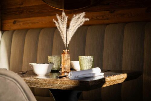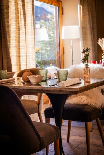 L’esprit IDA, c’est le mariage des matériaux nobles des chalets d’antan, d’un éclairage tamisé et de tissus délicats.
